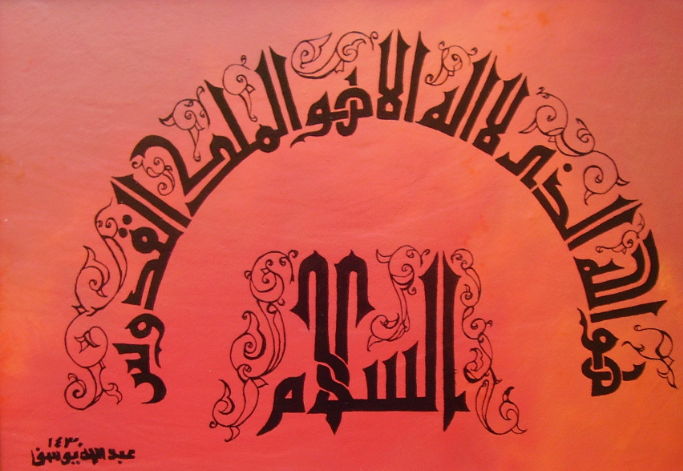 The first and oldest is Western Kufic, which was the very first Kufic writing. Simple and yet beautiful, it has been difficult to understand since the points are not always used.