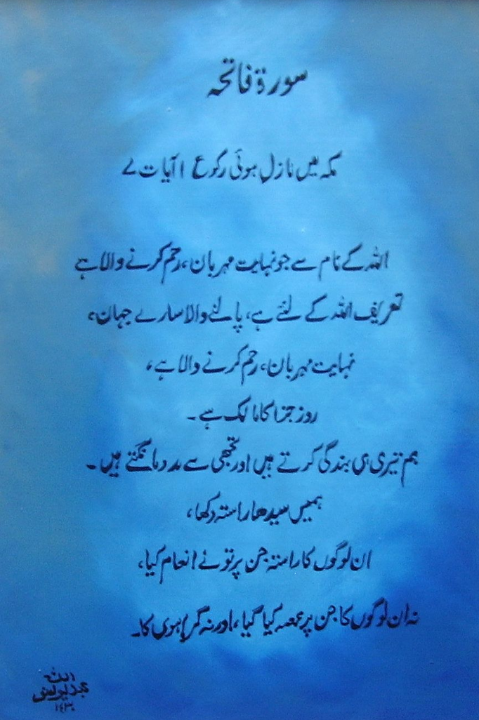 In the Urdu script and language (used in Pakistan today), the Al-Fatiha Surah: